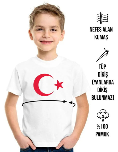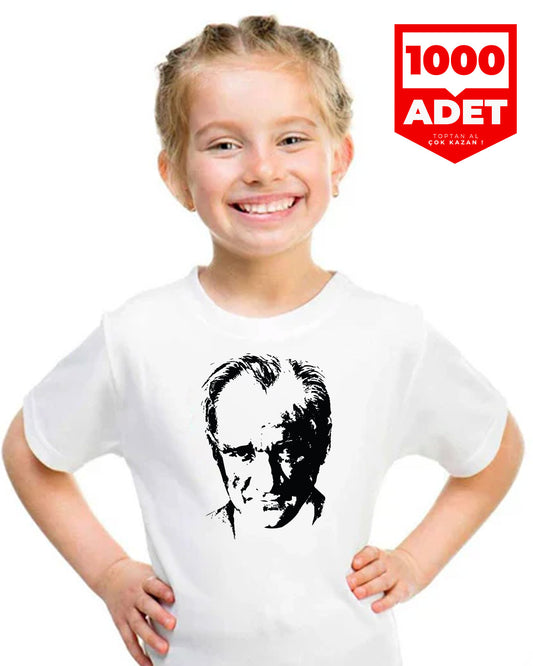 Atatürk Baskılı Promosyon Çocuk Tişört - Beyaz- 1000 Adet - Tek Renk Baskı