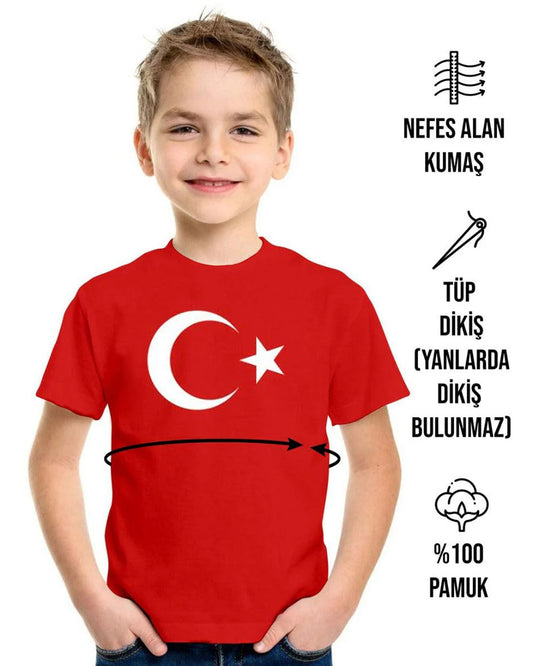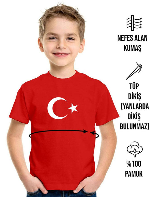 Ay Yıldız Baskılı Kırmızı Promosyon Çocuk Tişört - 1000 Adet - Tek Renk Baskı