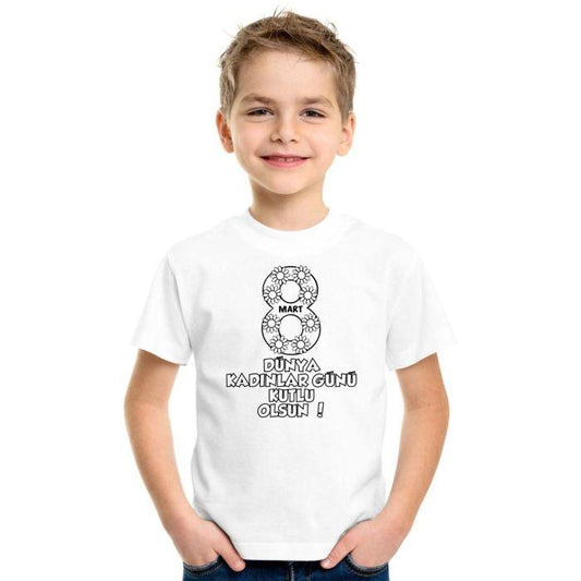 8 Mart Dünya Kadınlar Gününe Özel Boyanabilir Çocuk 1.Kalite Tişört