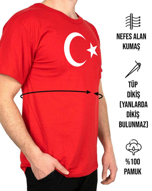 Ay Yıldız Baskılı Kırmızı Promosyon Tişört - 1000 Adet - Tek Renk Baskı