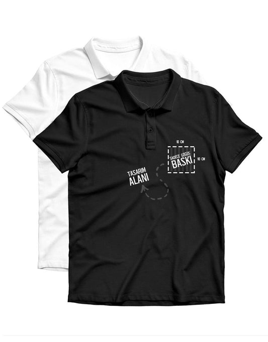 Polo Yaka Siyah Tişört - Dijital Baskılı