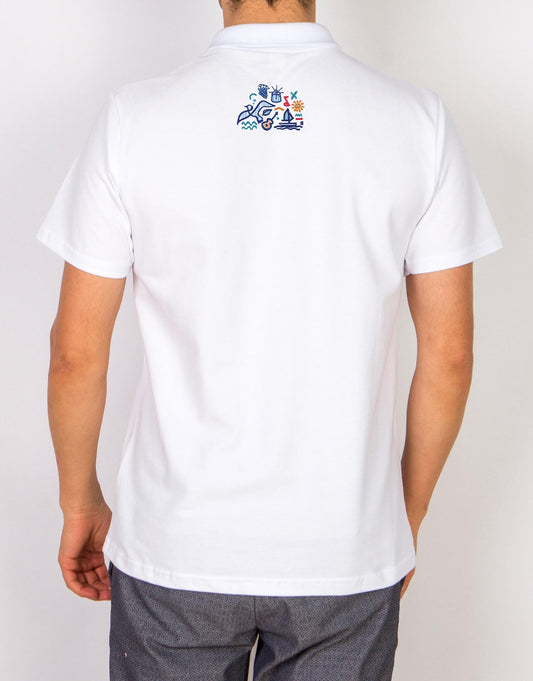 Polo Yaka Beyaz Tişört - Dijital Baskılı