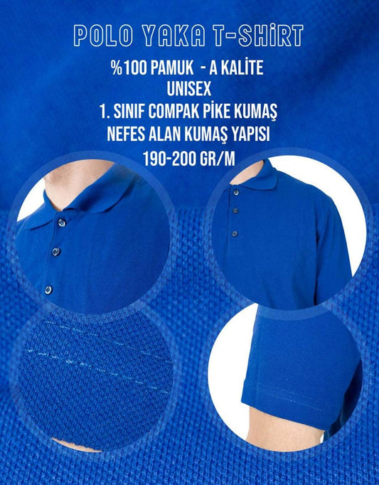 Polo Yaka Mavi Tişört - Dijital Baskılı