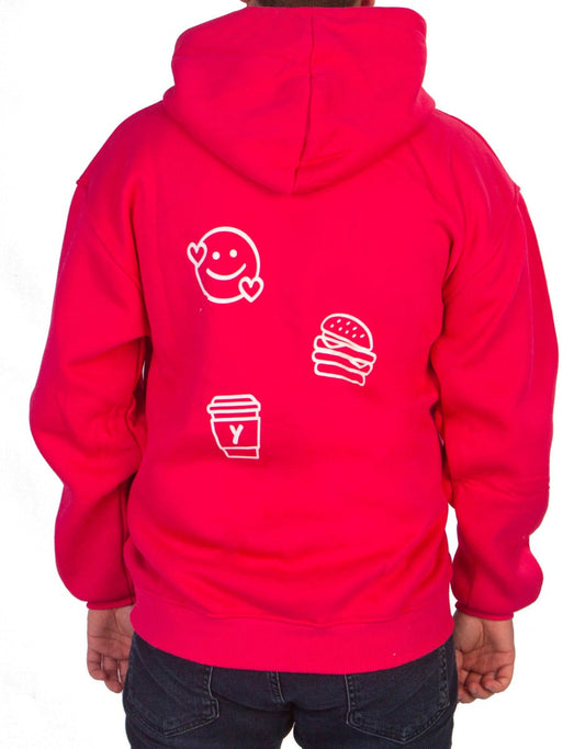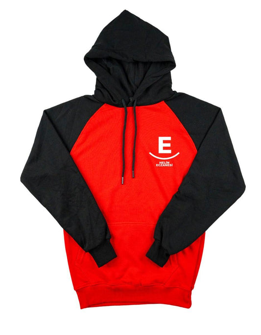 Baskılı Reglan Kol Kapüşonlu Sweatshirt Kırmızı- 3 İplik Şardonsuz