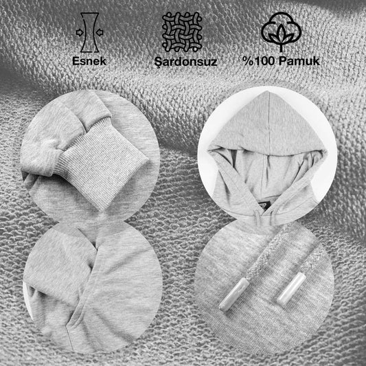 Kapüşonlu Sweatshirt Gri- 3 İplik, Şardonsuz