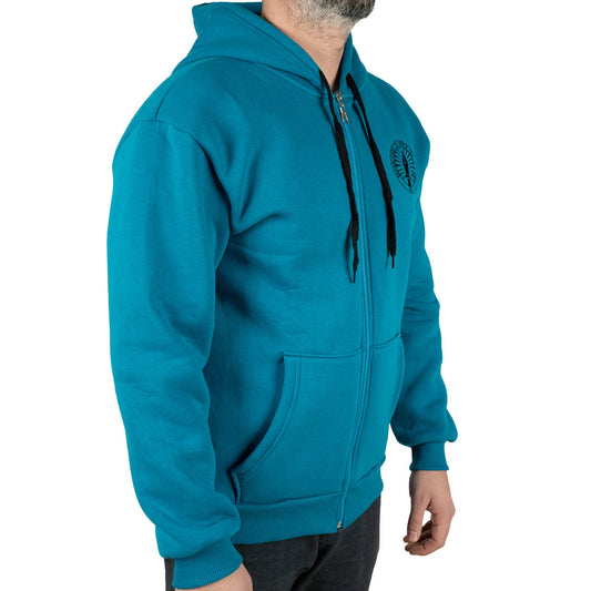 Logo Nakış Baskılı Kapüşonlu ve Fermuarlı Mavi Sweatshirt - 3 İplik, Şardonlu
