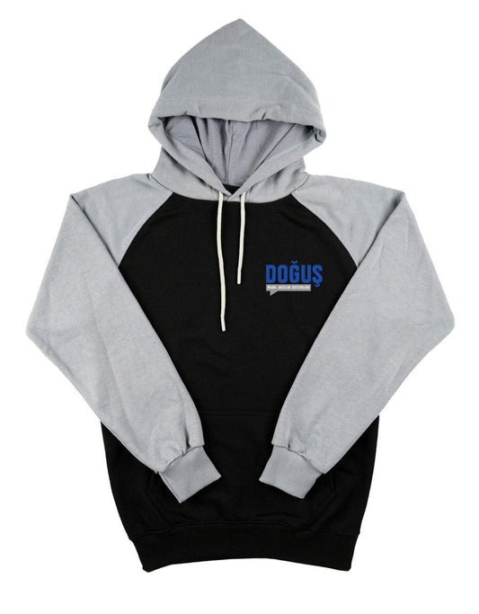 Baskılı Reglan Kol Kapüşonlu Sweatshirt Gri- 3 İplik Şardonsuz