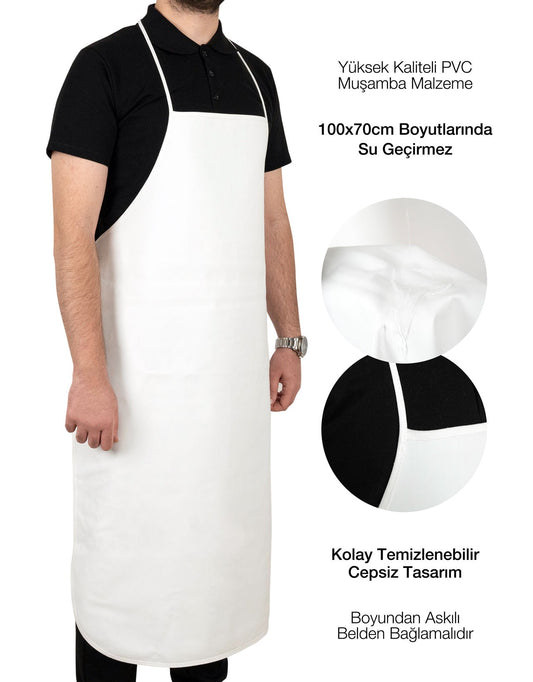 PVC Mutfak Bulaşık Önlüğü | Beyaz | Su Geçirmez ve Dayanıklı