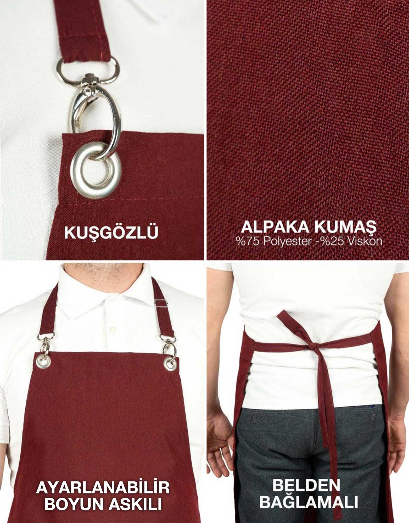 • 100 adet üzeri siparişlerinizde kartelamızdaki istediğiniz renklerde toptan mutfak önlüğü imalatı yapmaktayız.