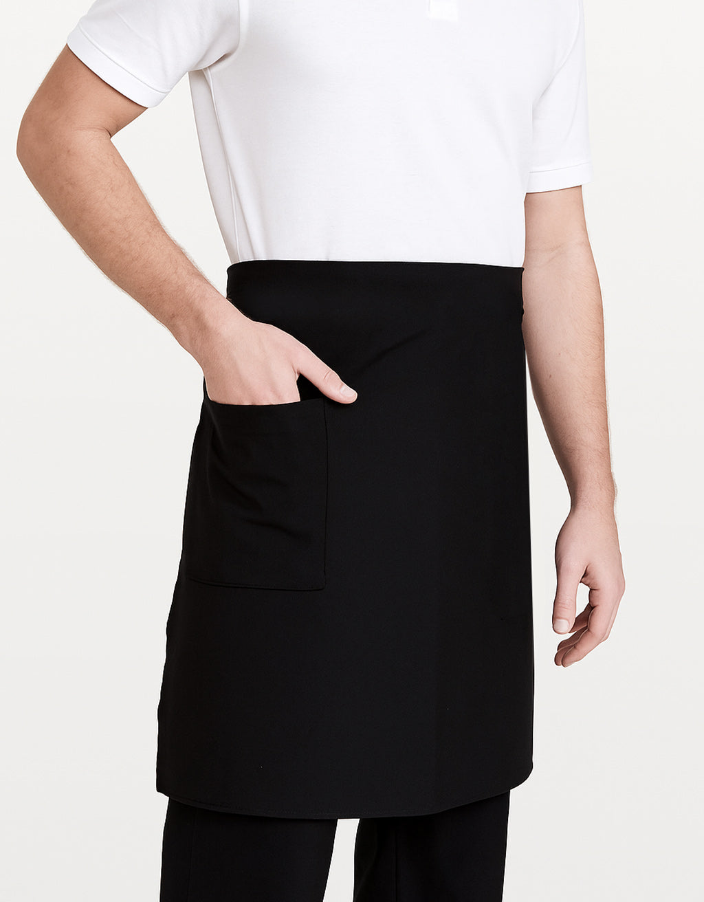 Bordo, kırmızı ve siyah renk kumaşlardan dikilmiş bel bağlamalı cepli garson önlüğü; Kafe, restoran, otel, ve diğer hizmet sektörü mutfaklarında kullanılmak üzere belden bağlamalıdır. Leke tutmaz, su geçirmez ve nemli bez ile rahatlıkla silinebilir.
