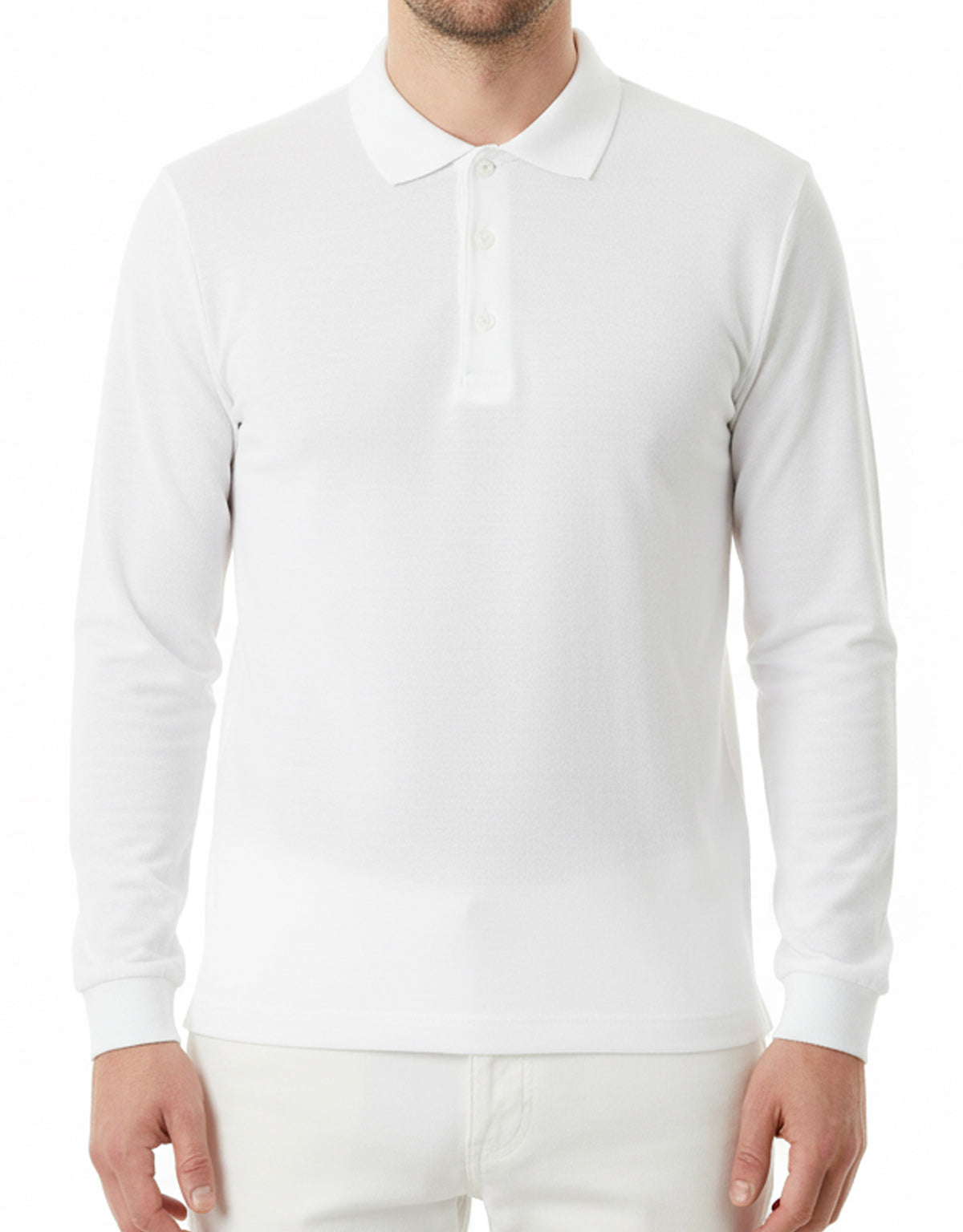 Polo Yaka Uzun Kol Beyaz Tişört